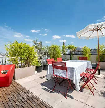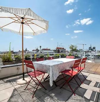 This is a unique penthouse apartment, located in the center of the prestigious island Ile Saint Louis. The apartment is on the 6th floor with a large living room and luxurious fully stocked kitchen with double fridge and built in ice machine. The ...