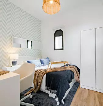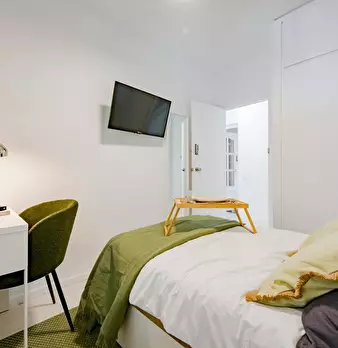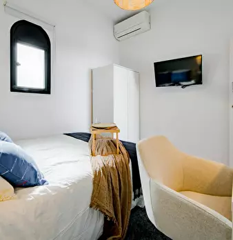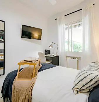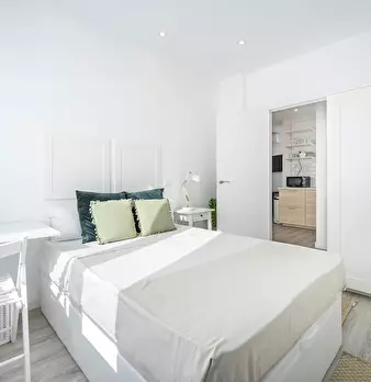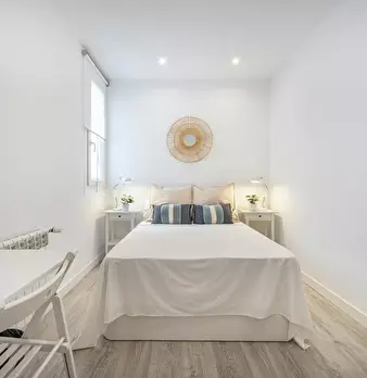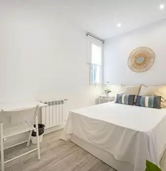 Modern and recently refurbished apartment, full equipped. All bedrooms are big with double bed, desk, wardrobe and individual Air Conditioning. Big windows and exterior to the street. Very bright apartment in a 5th floor with elevator.