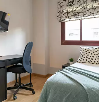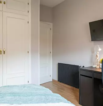 ???? Cozy room in Alcorcón, near Madrid! This bright and comfortable bedroom features a bed, a wardrobe, a TV, and a desk. Large windows let in plenty of natural light, making the room vibrant and ideal for studying or working. ???? About the ap...