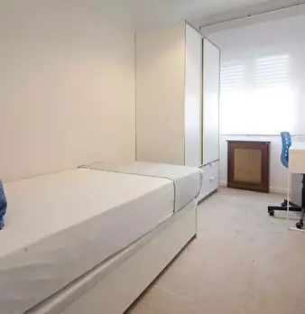 HABITACIÓN CON CAMA DE USO INDIVIDUAL La habitación cuenta con cama individual, zona de escritorio y armario. El apartamento cuenta con cocina completamente equipada y 2 baños compartidos por un máximo de 6 personas. Nuestro coliving está enfoca...