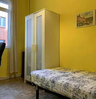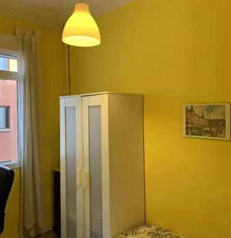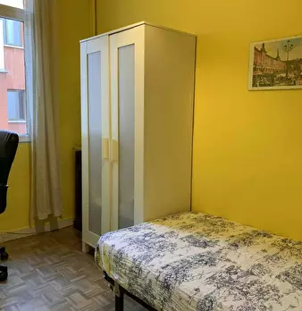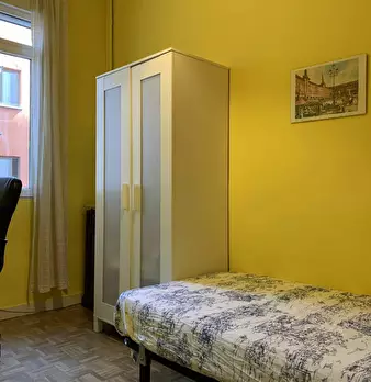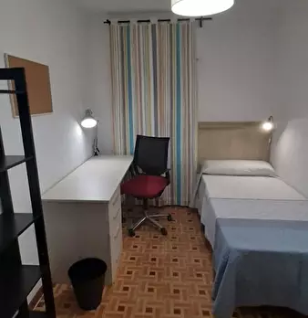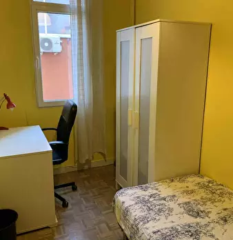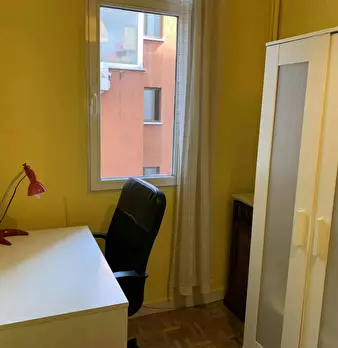 ???????????? Single room, exterior, very bright, spacious and very quiet. It has a lock on the door, wardrobes, desk, chair and lamp. The room is located in a 3-bedroom apartment, with a fully equipped and spacious kitchen, furnished living room...