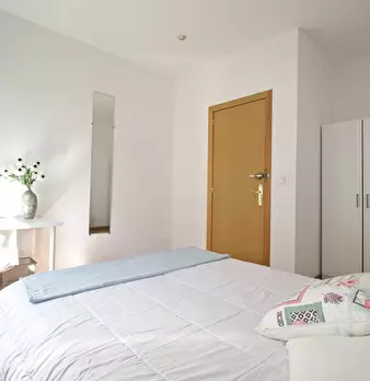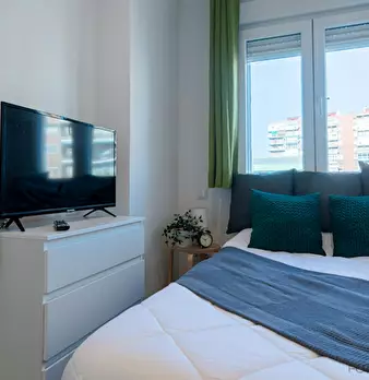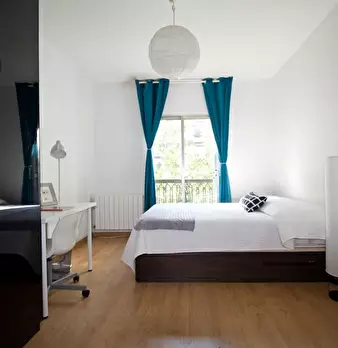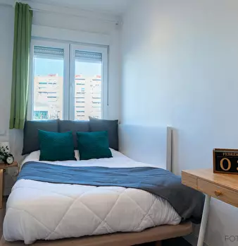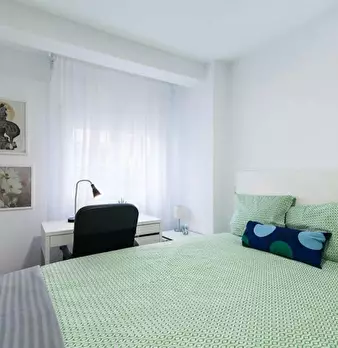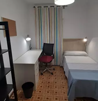 ???????????? Single room, exterior, very bright, spacious and very quiet. It has a lock on the door, wardrobes, desk, chair and lamp. The room is located in a 3-bedroom apartment, with a fully equipped and spacious kitchen, furnished living room...