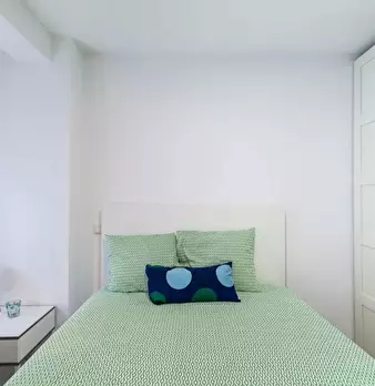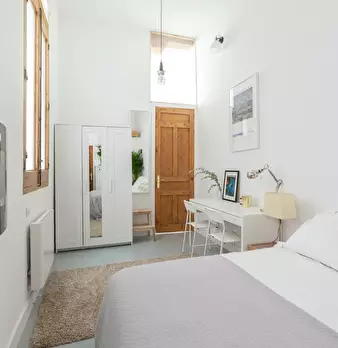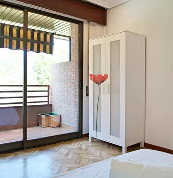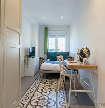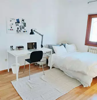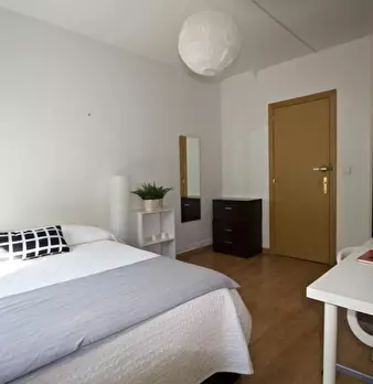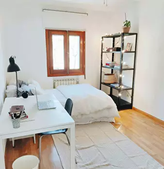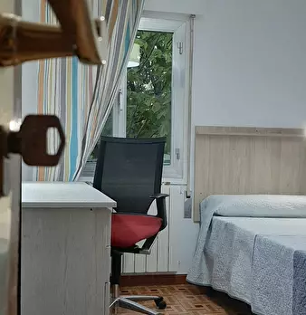 Private room equipped with desk and chair, bedside table, mirror, lamp, and closet. The bed does not include sheets and pillows, only the mattress cover. SERVICES AND RELEVANT INFORMATION: ✔Cleaning of common areas once a week. ✔Possibility of m...