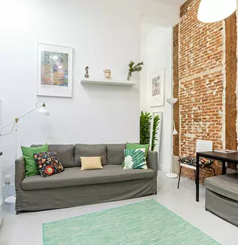 Spectacular luxury apartment brand new, furnished with new doble bed and new mattress in bedroom, sofa bed in living room, 2 fireplaces, TV, 4 restored old windows, brick wall, ceilings 4 meters height, old wooden doors, kitchen fully equipped wit...