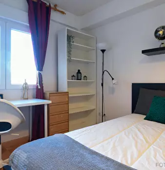 HABITACIÓN CON CAMA DE USO INDIVIDUAL La habitación cuenta con cama individual, zona de escritorio y armario. El apartamento cuenta con cocina completamente equipada, 1 baño compartido por un máximo de 4 personas. Nuestro coliving está enfocado ...
