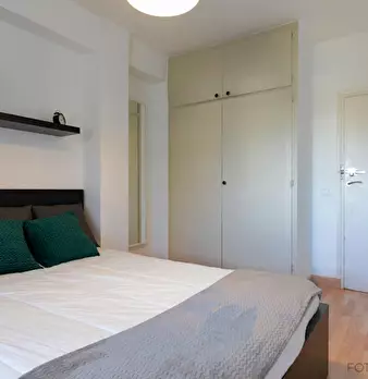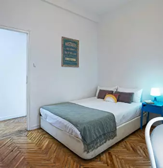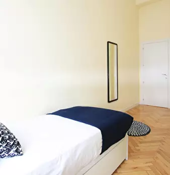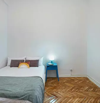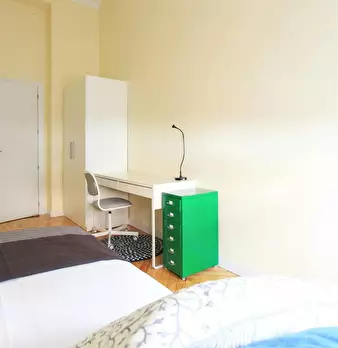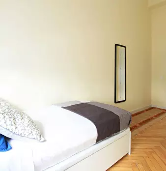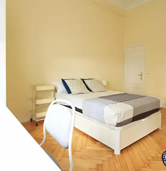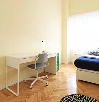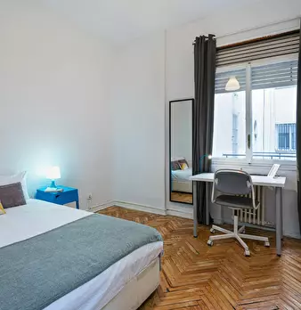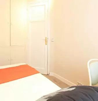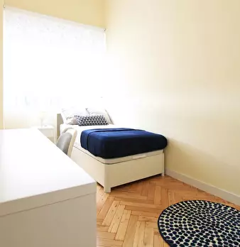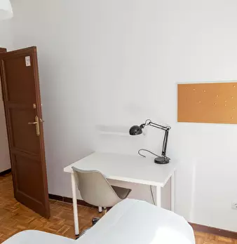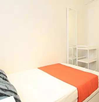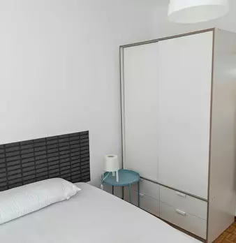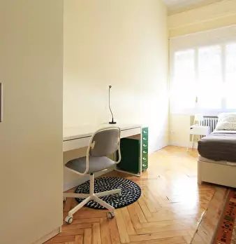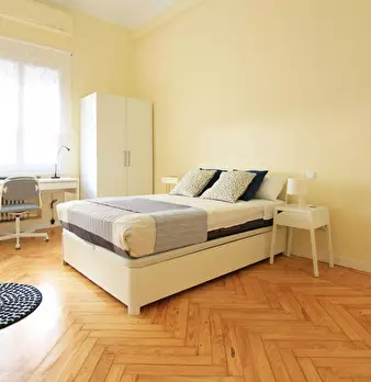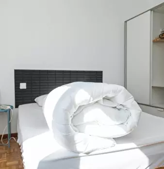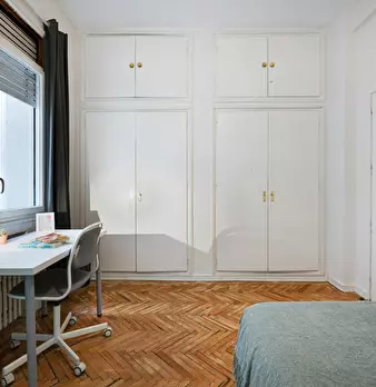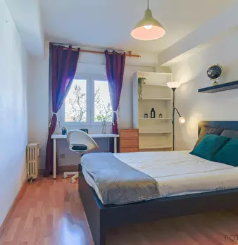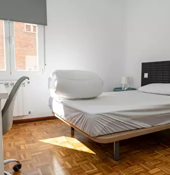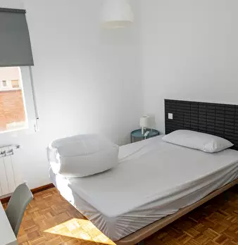Large exterior room with double bed, large three-leaf closet, mirror, bookcase, table with chair. Quiet and bright room. It has central heating. The room does not include sheets or pillows, only the cover for the mattress. The house has a total ...