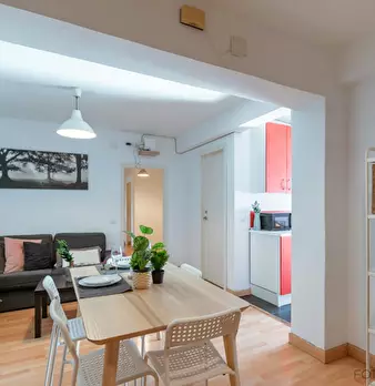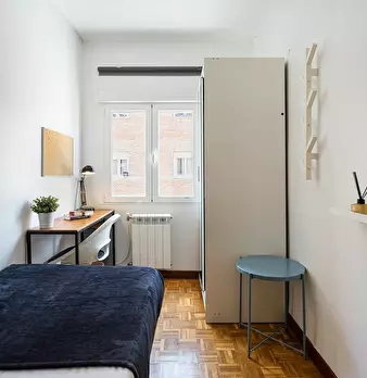 HABITACIÓN CON CAMA DE MATRIMONIO La habitación cuenta con cama matrimonio, zona de escritorio y armario. El apartamento cuenta con cocina completamente equipada, 1 baño y 1 aseo compartidos por un máximo de 5 personas. Nuestro coliving está enf...