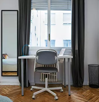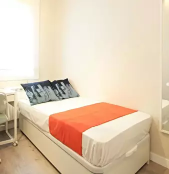HABITACIÓN CON CAMA DE USO INDIVIDUAL La habitación cuenta con cama individual, zona de escritorio y armario. El apartamento cuenta con cocina completamente equipada y 2 baños compartidos por un máximo de 7 personas. Nuestro coliving está enfoca...