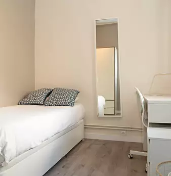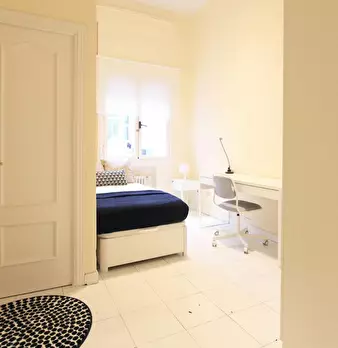 HABITACIÓN CON CAMA DE USO INDIVIDUAL Y BAÑO PRIVADO La habitación cuenta con cama individual, zona de escritorio, baño en-suite y armario. El apartamento cuenta con cocina completamente equipada, 1 baño compartido por un máximo de 5 personas. N...