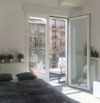 (hidden) alquila apartamento en Calle Princesa 12, con terraza a Plaza de España y Palacio de Liria. Recién reformado, con dormitorio doble. Exterior muy luminoso con acristalamiento doble. Calefacción central y Aire Acondicionado. Armarios empotr...