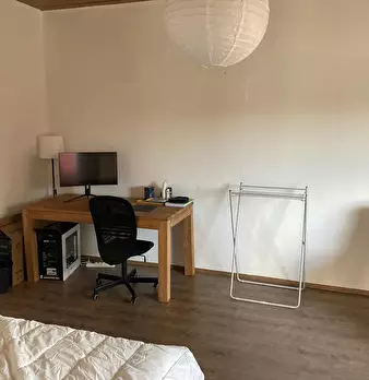 Das angebotene WG Zimmer befindet sich in einem sehr gepflegtem Mehrfamilienhaus, in einer komplett renovierten und modernisierten Wohnung. Das Zimmer verfügt über ein gemütliches Bett (1,40m x2,00m), einem Schreibtisch mit Stuhl, einem Kleidersc...