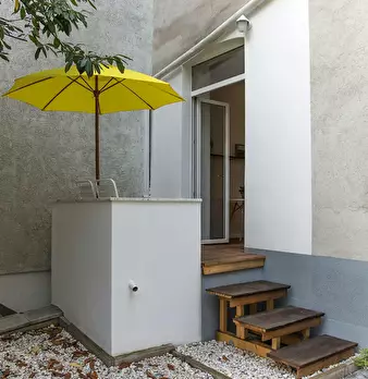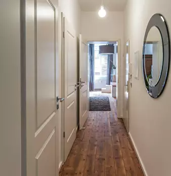 Die angebotene möblierte Wohnung befindet sich im Erdgeschoss und verfügt über ca. 40 m2 aufgeteilt in ein Wohn-/Schlafzimmer zur Straße und Küche mit einem kleinen Balkon mit exklusivem Zugang zum Innenhof. Eichendielen im ganzen Wohnbereich ...