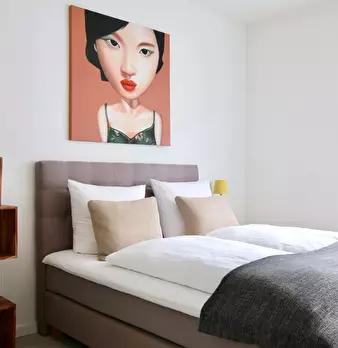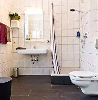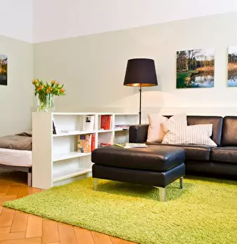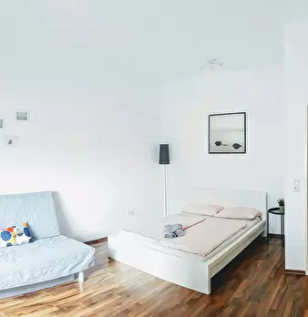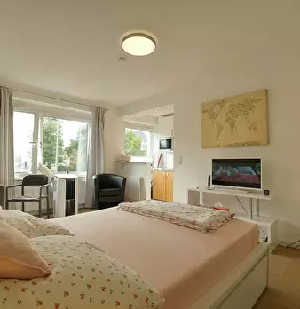 Spaciousness, a high ceiling and contemporary design create a feel-good atmosphere with a personal touch in this stylishly furnished apartment, leaving nothing to be desired. The studio consists of a living space/ bedroom equipped with a desk/din...