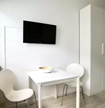 Bright, high quality 25 meter studio apartment with well-equipped kitchen, including everything you need for short or medium term stays. Wifi 50Mbps included Smart 32" flat screen TV (Netflix ready) Private Washing/drying machine included Nespress...