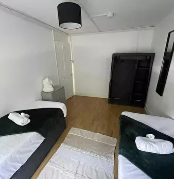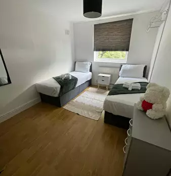 Spacious 3-bed flat ideal for contractors/professionals. Fully furnished with 1 double, 1 twin/king zip-link, and 1 single. Comfortable living area, equipped kitchen, 2 free parking spots. 20-min walk to city centre; 10-min drive to Nottingham For...