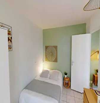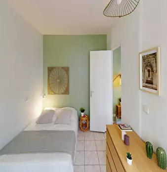 This lovely private bedroom in a fully equipped, furnished and all-inclusive flatshare in Bordeaux is a mix of comfort and design. It has got household furnishings, including a bed with pillows and duvet What is missing is your things to feel at h...