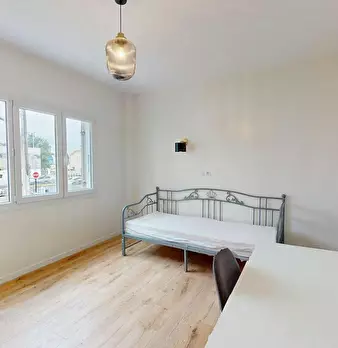 Notre agence vous présente cette colocation 9 chambres dans une maison de 220 m2 située au 40 rue Louis Mondaut à Cenon. ???? LA CHAMBRE Cette chambre dispose d'un lit, d'un bureau de rangements. Le parquet au sol et l'aménagement lui confèrent un...