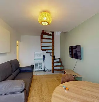On vous propose ce T2 en duplex de 32m2, situé dans la commune de Poitiers au 8 Boulevard Coligny. ???? APPARTEMENT ???? Ce T2 en duplex s'ouvre sur une pièce de vie aménagée d'un canapé, d'un meuble TV avec une télévision, d'une table avec quatre...