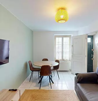Notre agence vous présente cette colocation de 4 chambres de 88 m2 située au 11 rue de Provence. ???? LES ESPACES COMMUNS La pièce de vie est aménagée avec un canapé, une table basse, un meuble télévision, une télévision et un meuble de rangement....