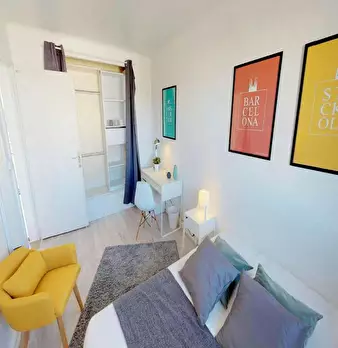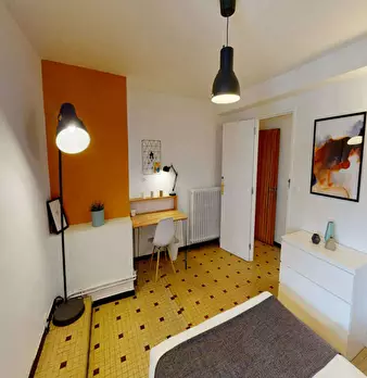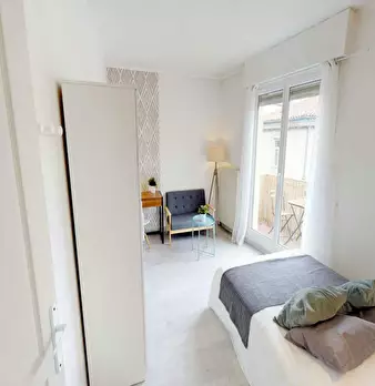 This lovely private bedroom in a fully equipped, furnished and all-inclusive flatshare in Montpellier is a mix of comfort and design. It has got household furnishings, including a bed with pillows and duvet What is missing is your things to feel a...