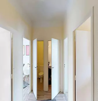 APPARTEMENT 4 PIÈCES AVEC BALCON Notre agence vous présente cette colocation de 3 chambres de 70 m2. au 17 Boulevard De Larramet à Toulouse (31300) Cette chambre se compose d'un lit double, d'une commode, d'une table de chevet, d'un bureau, et d'u...
