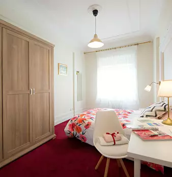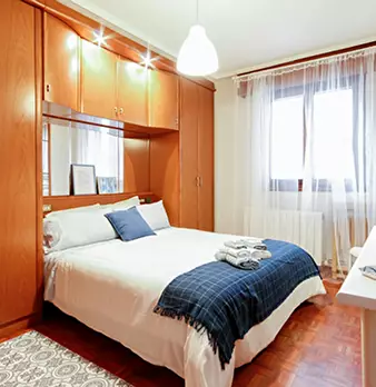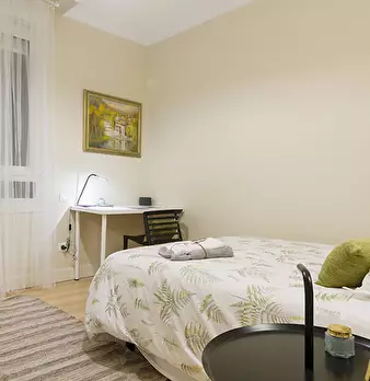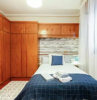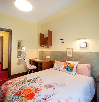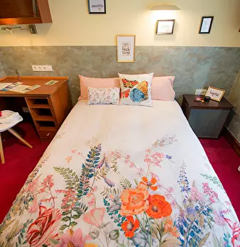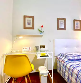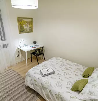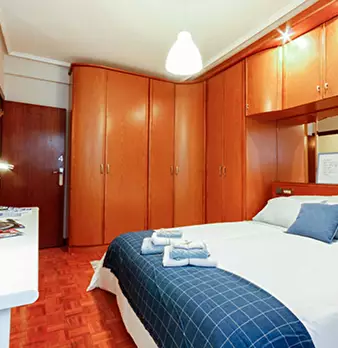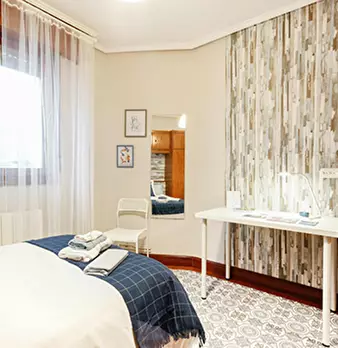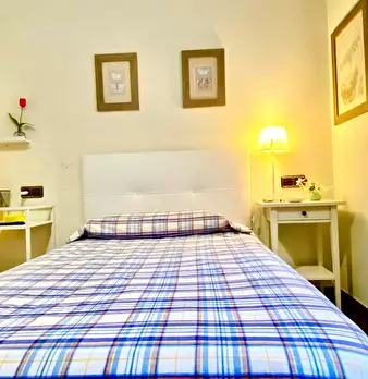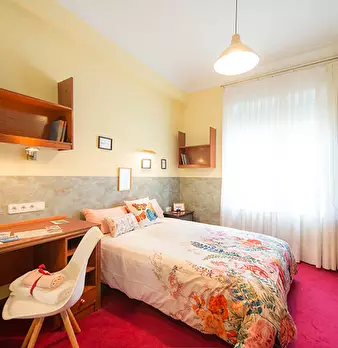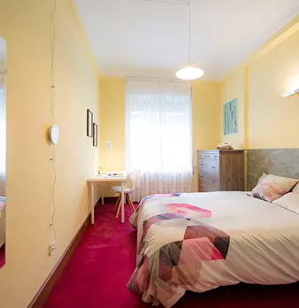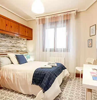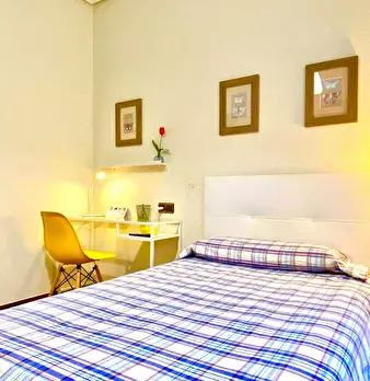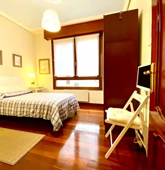 ZONA SOLOKOETXE / CASCO VIEJO HABITACIÓN PARA USO INDIVIDUAL o DOBLE (PARA PAREJA CONSULTAR PRECIO) Habitación con cama doble de 1,50x1,90m. con un gran armario y amplia zona de estudio . Ropa de cama: Protector de colchón, almohadas, plaid y co...
