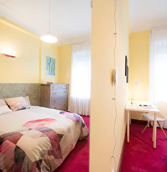ZONA SOLOKOETXE / CASCO VIEJO HABITACIÓN PARA USO INDIVIDUAL Habitación con cama individual de 1,08x1,90m. y otra cama debajo para visitas. Tiene un gran armario que recorre toda la pared y zona de estudio. Ropa de cama: Protector de colchón, al...