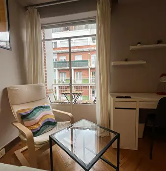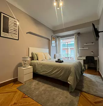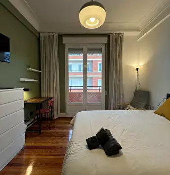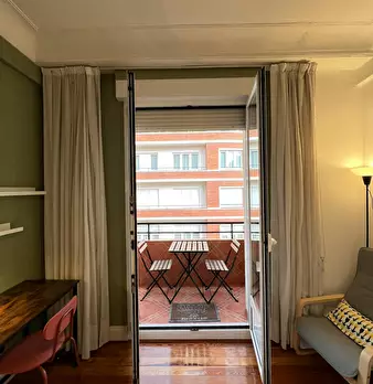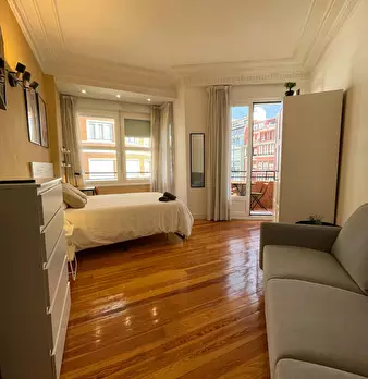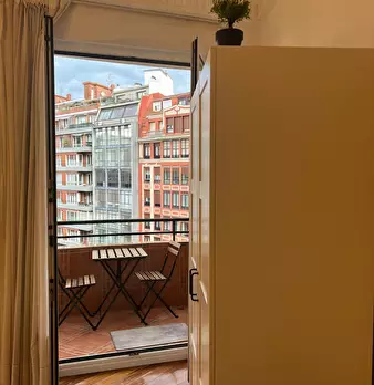 Habitación exterior con balcón en el centro de Bilbao. El ambiente en el piso es muy tranquilo dado que todos los inquilinos tienen rutinas ordenadas y tranquilas. La calidad de vida es muy buena y el ambiente muy respetuoso. Se alquila habitac...