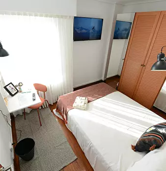 ZONA ROMO, LAS ARENAS (GETXO) HABITACIÓN H2 , USO INDIVIDUAL Habitación muy luminosa y tranquila. Suelo de madera, ventanas Climalit. Calefacción y agua caliente de gas ciudad. Zona de estudio con mesa plegable / escritorio, silla y flexo. Eq...