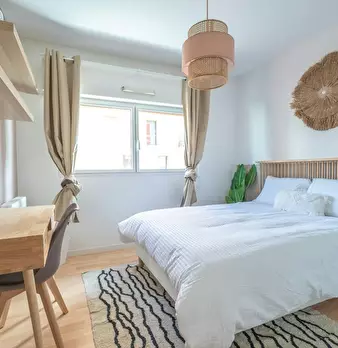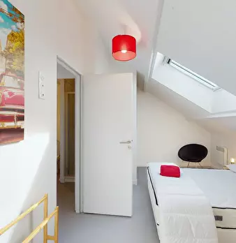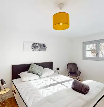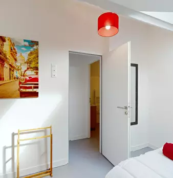 Bienvenue sur l’île de Nantes ! C’est dans l’un des endroits les plus agréables de la ville, à proximité des lieux de vie et des transports en commun, que nous vous ouvrons les portes d’un appartement de 93 m2. Ici se trouve cette chambre de 11 m2...