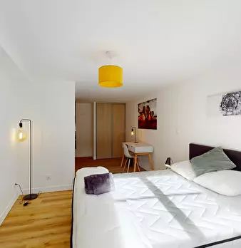 Au 95 Rue De La Patouillerie dans la commune d'Orvault (44700), découvrez cette colocation de 4 chambres de 73 m2. ???? LA CHAMBRE Cette chambre est équipée avec lit double, placard de rangement, bureau. Le plus : Une TV murale ???? LES ESPACES CO...