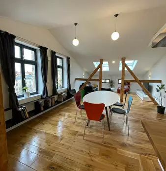 Ruhige zentrale Dachgeschosswohnung mit Eichendielen, möbliert, großzügiger Grundriss Preis 1470,-€ /Monat alles inklusive, nur möbliert Ideal für zeitlich begrenzen Aufenthalt für Langzeitbesuch, Lehrtätigkeit, Projektarbeit oder auch temporärer ...