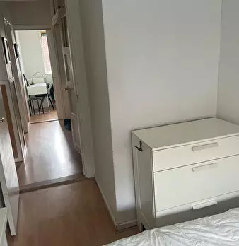 Lovely room, renovated in 2024! Clean room with private sink with hot and cold water, heating, large windows. Room has a double bed, wardrobe and table with chairs. Kitchen with everything you need is shared as well as the seperate toilet and s...