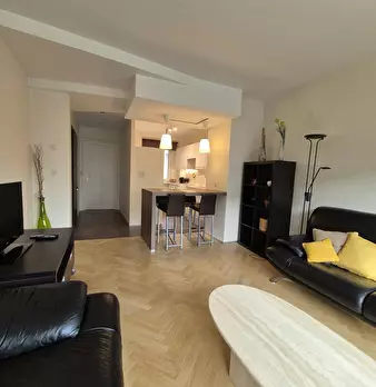 - Modern apartment (6th floor with elevator), fully furnished and renovated, ideal as a roommate with 2 bedrooms and common areas located in the center of Charleroi "ville base", close to all amenities: Shopping Center Rive Gauche 200 meters. Bus ...
