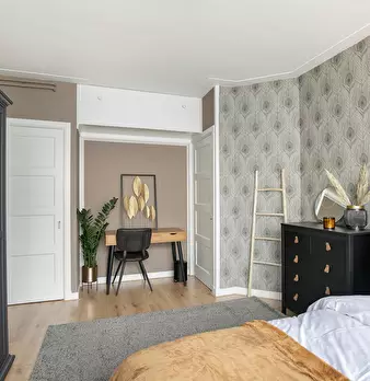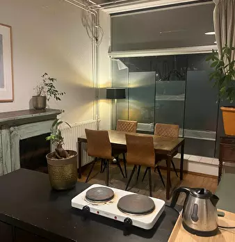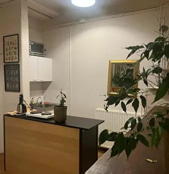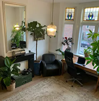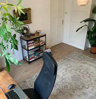 Spacious flat with private living/working room. Flat is 84m2 in size. Status: - Ceiling 3 metres high - Partially upholstered - Curtains that keep light out - Stained glass - Large bathroom - Quiet neighborhood New (last year): - Boiler - Kitc...