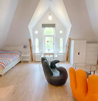 ????Huge and Fully Equipped Bedroom Waiting For You In Haagwinde, Capelle aan den IJssel???? The offered room is the big room with the stairs on the right. The nice spacious room: 17.40 m2 split level (4.15 x 3 + 1.65 x 3) is fully furnished with...