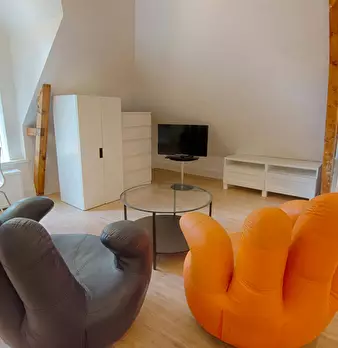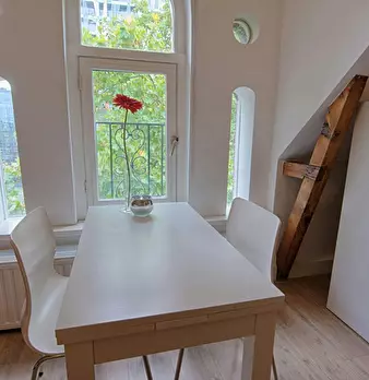 A beautiful room on the 2nd floor on the front side of the building. Room is furnished and upholstered. The kitchen was recently renovated and has everything needed such as kitchenware (cutlery etc) including a dishwasher. The Bathroom is quit...