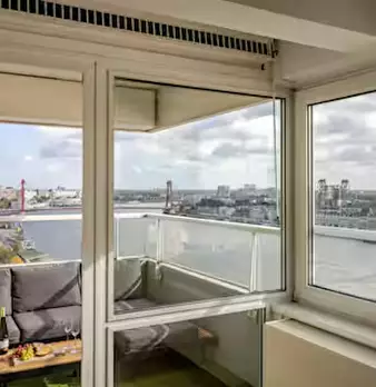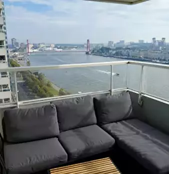 Very well located in the city center 2-bedroom apartment with an amazing view of the Maas, the Erasmus Bridge and the Willemsbrug. 3 metro stops from Central station and 10 min walk to Markthal and Blaak train station. Less than 10 min walk to mus...
