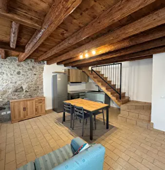 COMPOSIZIONE: Proponiamo in affitto abitazione a schiera, situata a Calaone, con magazzino e scoperto di pertinenza. Al piano terra si apre un'accogliente zona pranzo con cucina integrata al soggiorno. Salendo al primo piano troviamo spaziosa came...