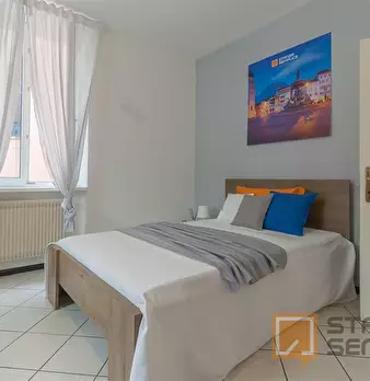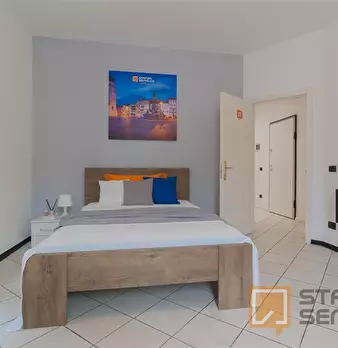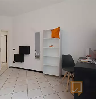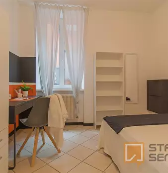 Stanza singola ben disposta con letto a una piazza e mezzo, armadio 3 ante, scrivania e sedia, libreria, scarpiera. Una camera con tutti i confort di una suite al prezzo di una standard, centrale alla città e vicina a tutti i servizi, perfetta per...