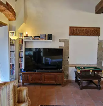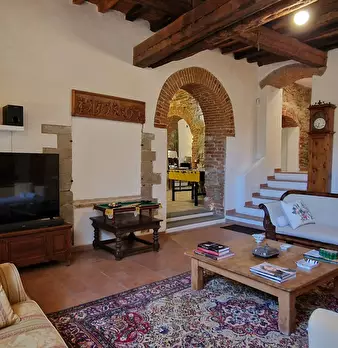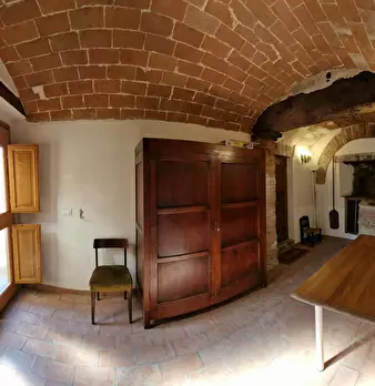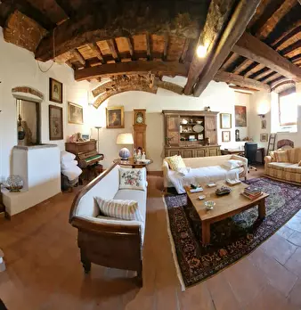 Storico e chic appartamento all'interno di una vecchia casa colonica, in contesto rurale e signorile. I travi a vista e le pareti in pietra raccontano i tempi che furono, gli arredi ricercati ed eleganti, i particolari vintage contrastano ed esalt...