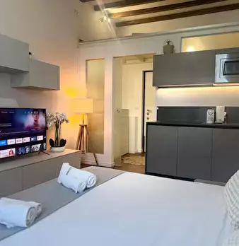 Bright and quiet apartment in the heart of the city, located inside a private courtyard that ensures peace and privacy. The apartment features one double bedroom and a mezzanine with the possibility of accommodating one single bed. It consists of ...