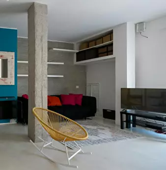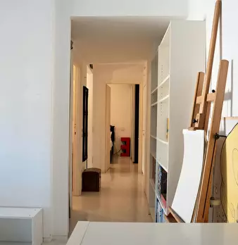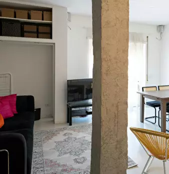 Attico luminoso e spazioso a Scalo San Lorenzo. In edificio di 7 piani, al settimo ed ultimo piano con ascensore. L'ingresso da direttamente sull'area living, con divano per 3, tavolo da pranzo per 2, poltroncina e tv. Il corridoio, con lavatrice...
