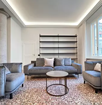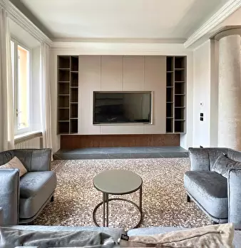 Located at Via Tito Livio 35, just a short distance from the vibrant heart of Milan, this designer apartment blends contemporary elegance with functional comfort in a quiet and well-serviced residential area. The entrance opens into a bright open-...