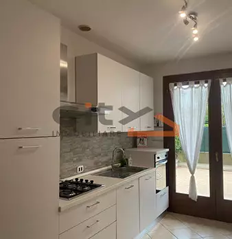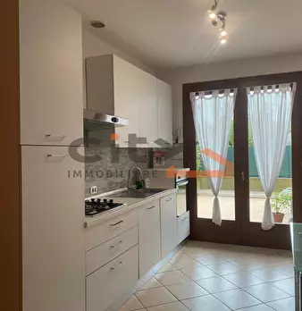 CAMPOLONGO MAGGIORE - APPARTAMENTO ARREDATO al piano terra con ingresso e giardino totalmente indipendenti, composto da soggiorno e cucina open space, disimpegno, camera matrimoniale, bagno finestrato con doccia, garage collegato all'abitazione e ...