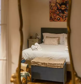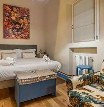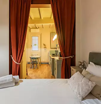 Bright and quiet apartment in the heart of the city, located inside a private courtyard that ensures peace and privacy. The apartment features one double bedroom and a mezzanine with the possibility of accommodating one single bed. It consists of ...