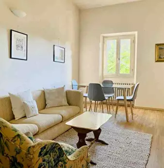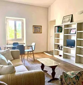 This spacious apartment is located in a modern building on a side street off Viale Trastevere, just a few minutes' walk from Trastevere Station and the Porta Portese market area. It comprises a comfortable living room with dining area, a fully equ...