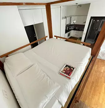 Small shabby-chic studio of about 28 sqm, basement level, featuring a kitchenette equipped with a cooking plate, mini fridge, and microwave, along with a cozy sofa, desk, double bed, and a bathroom with a shower. This charming studio is nestled in...