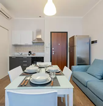 Cozy and modern two-room apartment, located in the Porta Romana district. The city center is easily reachable by yellow metro, in just 10 minutes. The apartment consists of a living area with dining table and large open kitchen, equipped with ever...