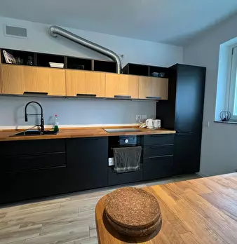 Modern studio with exposed beams, fully furnished and equipped! Our well-organized place has a clear modern touch and it consists of a sleeping area with a double bed and comfy sofa, many shelves provide you with a with enough space to arrange al...